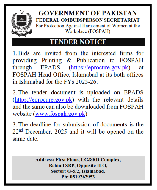 Tender Notice (Printing)